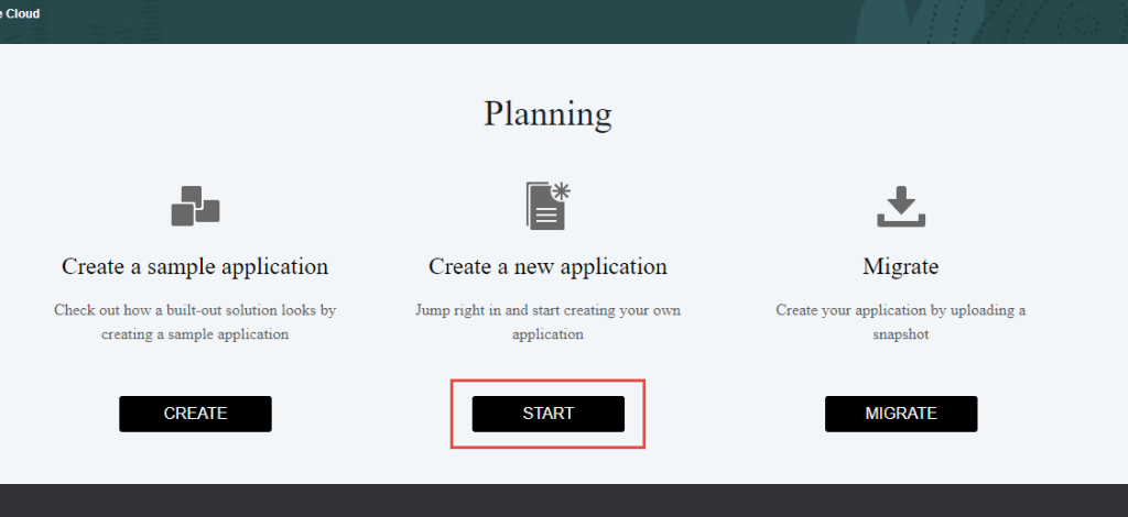 From the next page, select Create a New Application. Note: If you are going to import an existing Essbase outline, you would still select Create a New Application, do not select Migrate.