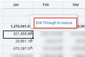 Right clicking on the cell brings up the Actions menu, select Drill-Through. This menu can also be accessed from the Actions button in the upper right of the form.