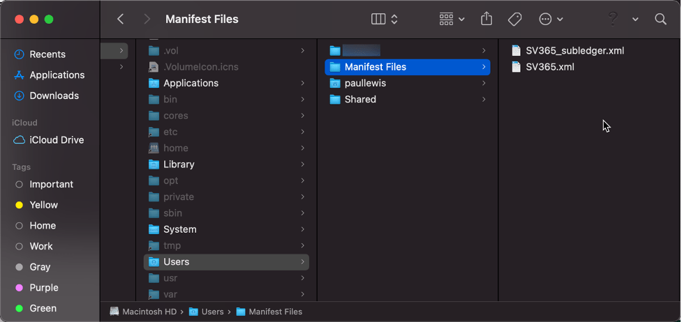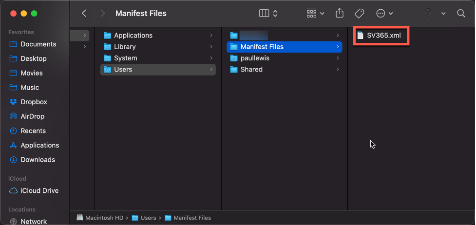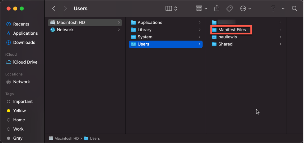 The first step was to create a manifest file. You’ll need a folder on the Mac for saving that manifest file when it’s created. I created the folder “Manifest Files” in the root of the Users folder.