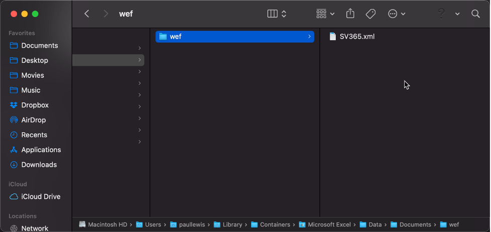 /Users/<user>/Library/Containers/com.microsoft.Excel/Data/Documents/wef