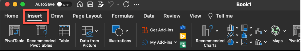 Now we’re ready to enable the Smart View add-in in Excel. Launch Excel 365, then select the Insert tab.