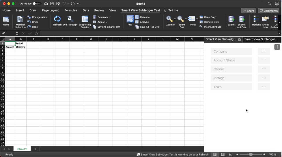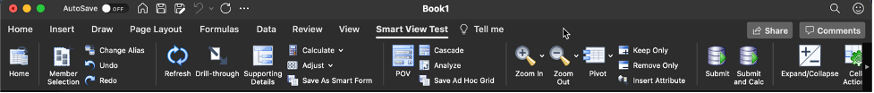 The ribbon operates similar to how it does on a PC. Depending on which menu items you enabled, those items will appear. There are cosmetic differences, but functionality is basically the same. You can open the other connection(s) in the same workbook on different sheets. When reopening, you may need to select the Smart View connection again from My Add-ins and click on the Home icon.