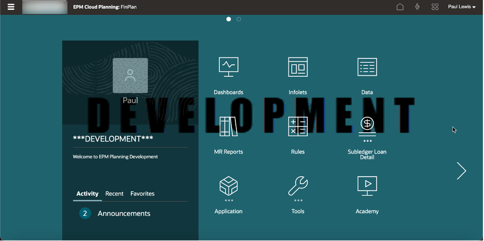 Next, login to the EPM Cloud environment.