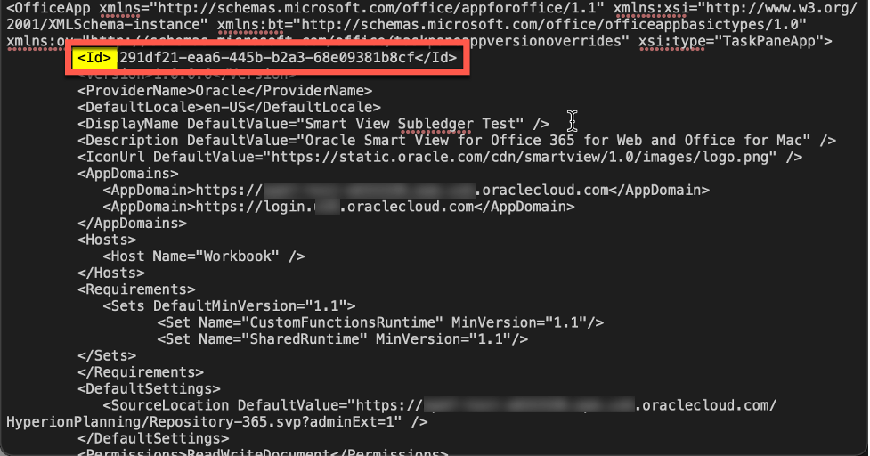 The ID element is a long string of characters. Oracle recommends a simple edit of incrementing the last digit by 1. For our file: