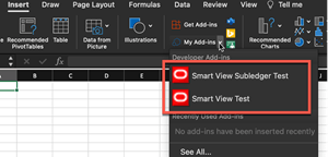 Click the drop-down arrow on My Add-ins. Select the Smart View add-in.