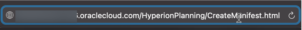 Manually change the URL to https://serviceURL/HyperionPlanning/CreateManifest.html