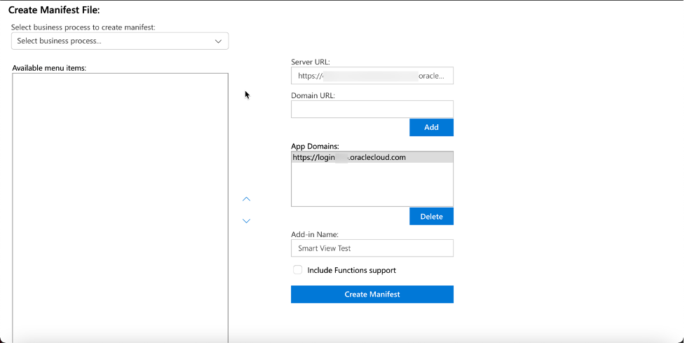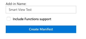 When finished with menu item selections, click Create Manifest. Enter a name for the file if prompted, this will depend on your Mac preferences for downloading files. You should also customize the Add-in Name, the default is “Smart View”, I changed to “Smart View Test”.
