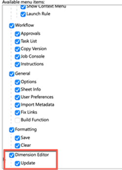 Select the menu items you want to be available. I left all the default selections and then added Dimension Editor.