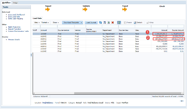 The variances were small, less than one dollar. I knew it wasn’t a rounding issue, the GL only goes to two decimal places. I compared the load file with the Workbench in Data Management for a specific account to determine what was going on. Data Management showed the same values for source and target, and these values did not match the load file. How could that be possible? Was the load file wrong?