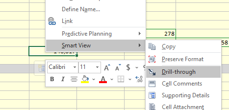 Right clicking the cell brings up the Smart View menu to select Drill-Through.