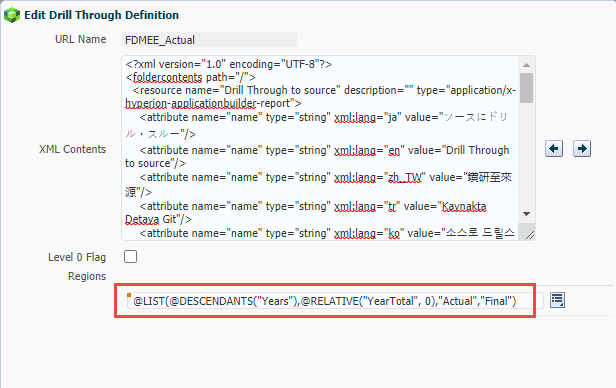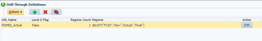 This needs to be modified so loads with different periods and years are included in the drill region.  Select Edit and update the members.  Scenario and version are not being modified since this load is specific to actual and final.  These members can be updated if needed.