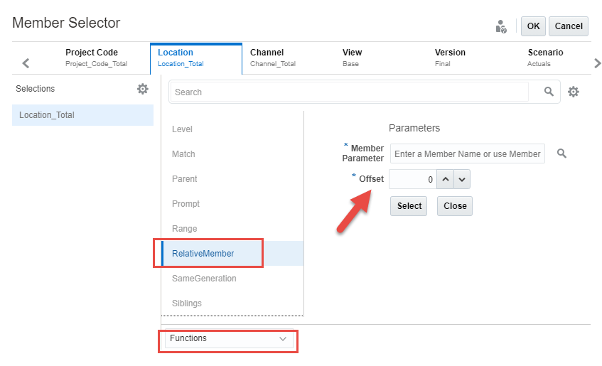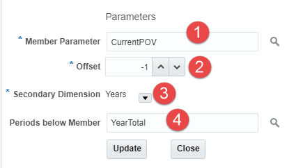 - The Offset value is how many period members you want to go forward or backward from the member selected above