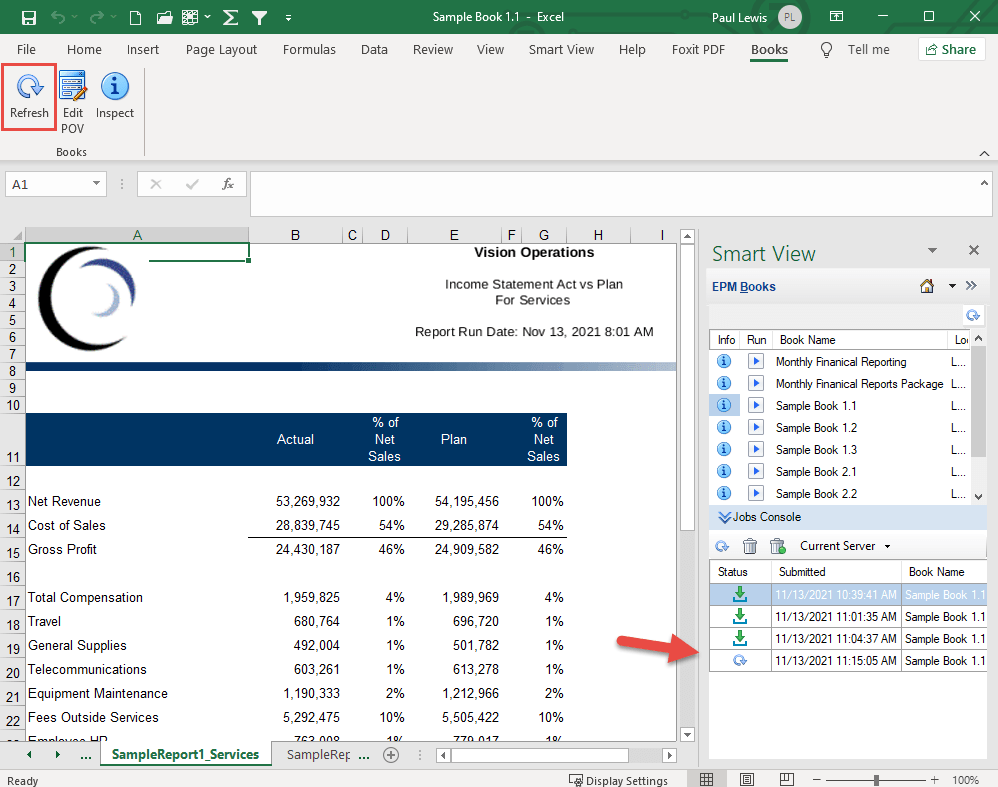 Overall, pretty easy to use functionality that gives users another option for managing EPM books. The only hiccup we had was figuring out how to view a report after updating the POV. When the POV is edited, or the book is refreshed, a re-download of the book is necessary.