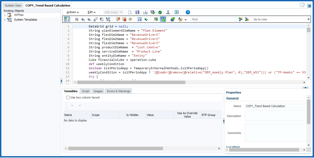 I discovered recently that the out-of-box (OOB) trending calculation in EPM does not include “No Currency”. The OOB rule only calculates on descendants of “Input Currency”. I don’t think this was a secret, I’m sure it’s stated somewhere in Oracle documentation, but I never encountered it before. While the need is likely rare, if you find yourself in a situation where it is needed to trend on No Currency, there is an easy fix.