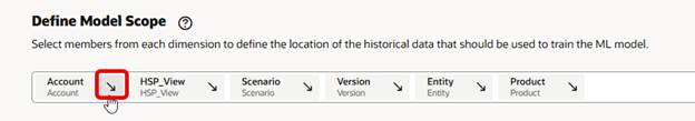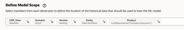 For the historical data, click each dimension in the Define Model Scope section and select the members. The selections are the same as you would do in a regular Auto Predict for history.
