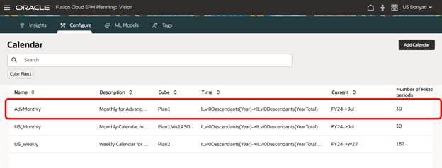 Advanced Predictions require a Calendar to be used. In our sample application, we have a couple of calendars already created, but we decided to create a new one specifically for this testing.