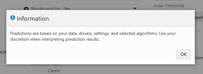 It will take some additional analysis to compare this Advanced Prediction with traditional predictions, but at first glance it looks reasonable. There is a bit of a learning curve in configuring Advanced Predictions, and I had a few failures during testing (i.e. unsure what to select in Confidence Intervals, a wrong Calendar parameter). I still need to go back and test generating best and worst cases, and larger data sets with other drivers. Overall, this is a substantial improvement in EPM predictive forecasting, and we should definitely be taking advantage of it. I encourage you to read through the Oracle documentation for more details and guidance.